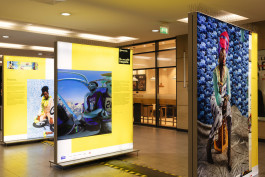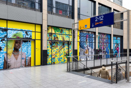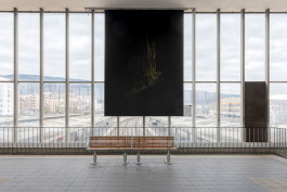 Informationstafeln am Heidelberger Hauptbahnhof zu den Werken von Misha Vallejo Prut, aus der Seire Secret Sarayaku und Eline Benjaminsen, aus der Serie Footprints in the Valley.